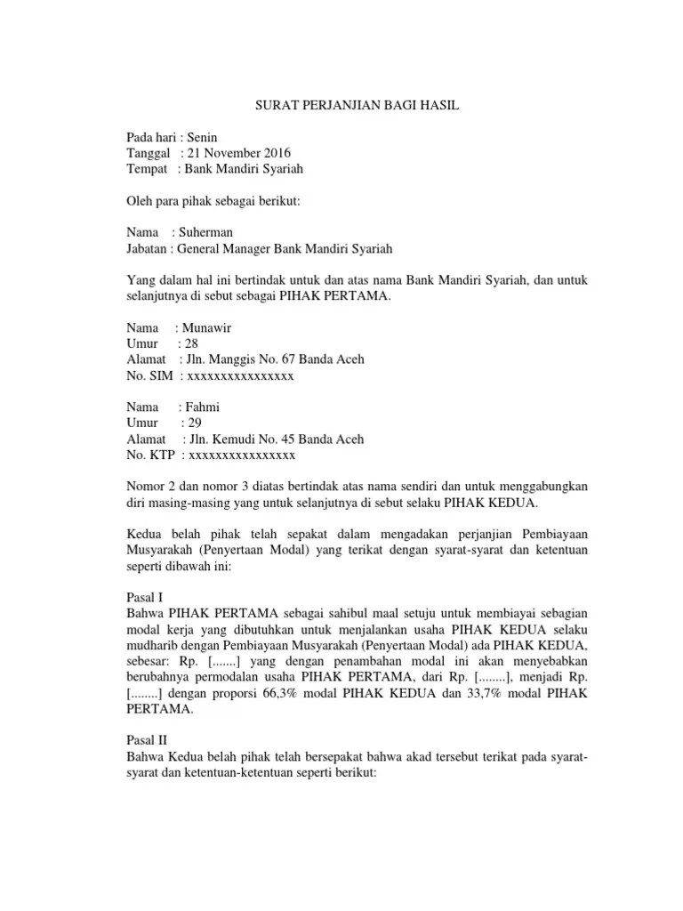 Contoh Kasus Perjanjian Bagi Hasil : Contoh Surat Perjanjian Pra Nikah Dan Ru : Fakultas keguruan dan ilmu pendidikan, universitas muhammadiyah surakarta, 2012 +.